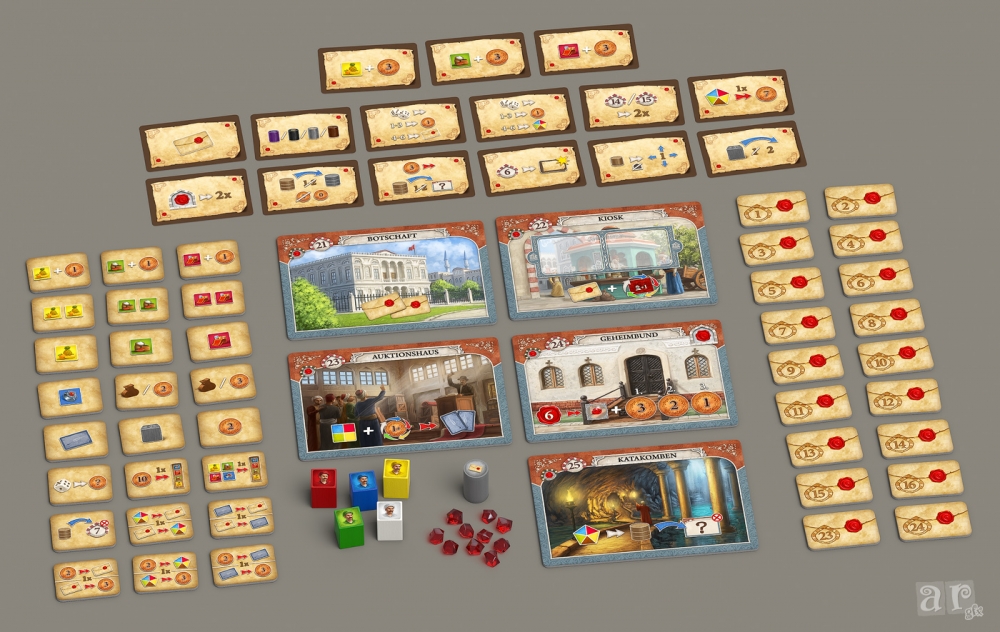 Vocês, os mercadores de Istanbul, presenciam o surgimento uma maneira nova e bastante lucrativa de ganhar dinheiro extra: entregando mensagens aos comerciantes do bazar! Ao fazê-lo, você pode pegar algumas informações úteis aqui e ali e você pode vender para a sociedade secreta. Para manter seu negócio regular em funcionamento, você contratou um companheiro que o apoia ativamente. É verdade, ele é um pouco mais lento do que você gostaria, mas, em troca, ele não exige nenhum assistente.