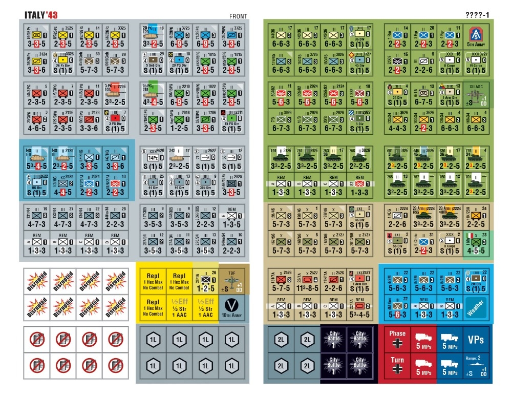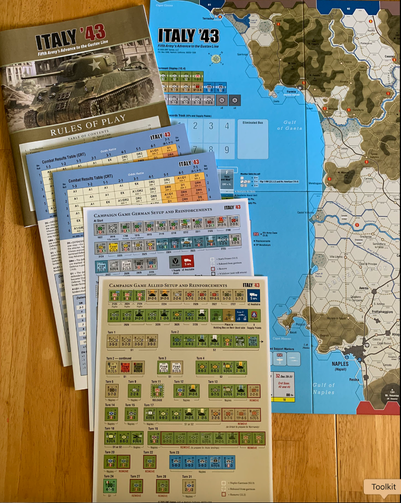 Italy '43 é um jogo para dois jogadores que descreve o avanço do Quinto Exército dos EUA de Nápoles até a Linha Gustav em 1943. O jogo (que continua de onde Salerno '43 parou) cobre o período de 2 de outubro a 31 de dezembro de 1943.