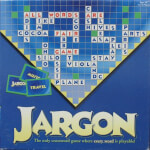 Jargon é como Scrabble. O tabuleiro apresenta uma grade familiar, mas ligeiramente distorcida, para a colocação de peças de letras. A cada rodada, a vez de Jargon apresenta um jargão ou categoria específica: pode ser "Militar" ou "Viagem" — são 40 categorias ao todo. A reviravolta é que você ganha pontos fazendo palavras mais longas, independentemente das letras, e pode usar gírias, abreviações, nomes, o que quiser. A jogabilidade também é muito mais rápida.