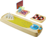 Possui uma mesa para a criança jogar jogo de argola, jogo da velha, jogo de basquete e boliche.