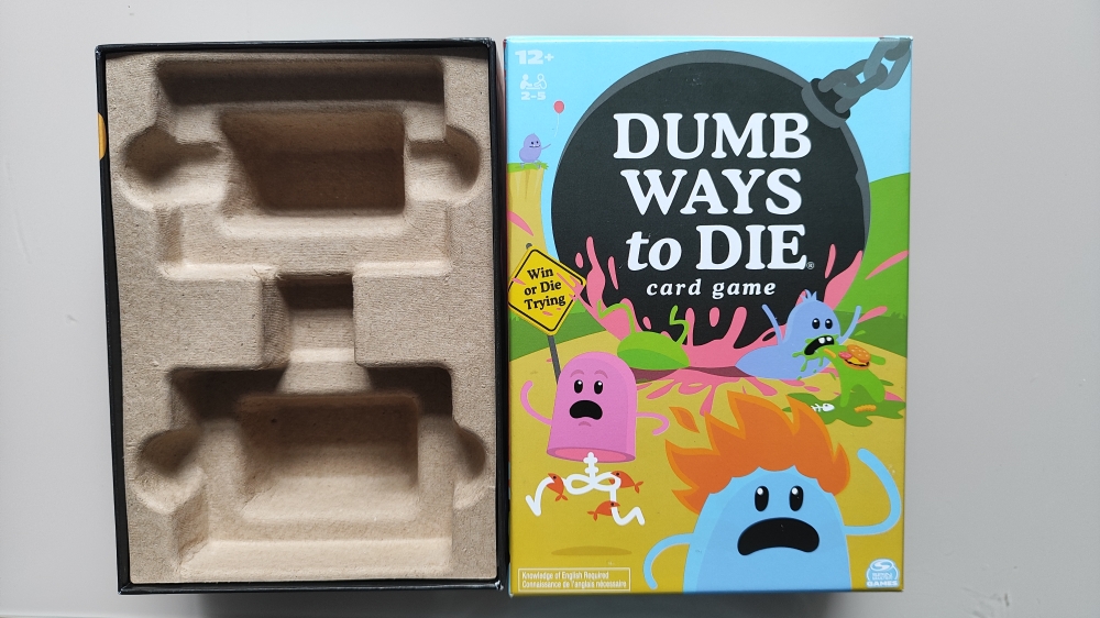 Caixa do jogo com insert que lembra caixa de ovo.