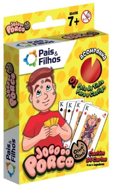diante, até que alguém consiga formar uma quadra. Assim que alguém formar uma quadra, deve abaixar as cartas com a face para baixo. Os jogadores que virem alguém abaixando as cartas, devem abaixar as cartas da mão também de forma que os outros jogadores não vejam que você abaixou as cartas. O último jogador a abaixar as cartas é o perdedor e ganhara uma marca da patinha do porco no rosto . O jogador que acabar com o coringa também recebe uma letra. O coringa: o coringa não pode ser a primeira carta a ser passada e, ao ser recebida, o jogador deve segurá-la por pelo menos uma rodada antes de passá-la ao próximo jogador. Alertas falsos: caso algum jogador abaixe as cartas sem ter formado uma quadra também receber um marca. O jogador que alcançar 05 marcas(P,O,R,C,O) será o perdedor da rodada.
