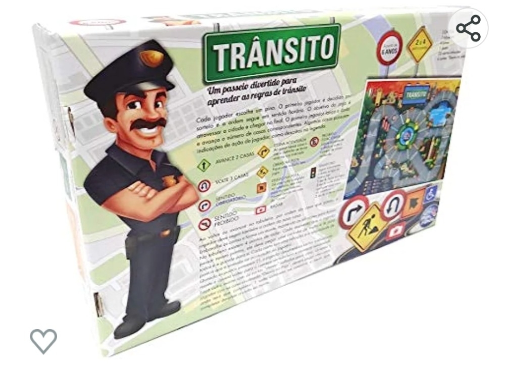 Cada jogador escolhe um pino, O primeiro jogador é decidido por sorteio e a ordem segue em sentido horário, O objetivo do jogo é atravessar a cidade e chegar no nal, O primeiro jogador lança o dado e avança o número do casas correspondentes. Algumas casas possuem indicações de ação do jogador, como descrito na legenda. Ao voltar ou avançar no tabuleiro, por ordem da casa que parou, o jogador deve seguir também a ordem da nova casa. Embaralhe as carias e forme um monte, mantendo as infrações para baixo. No tabuleiro existem 4 pontos de radar. Cada momento que o jogador passar nesses pontos, ele deve pegar uma cartinha de multa e lê para todos e a guarda para si. Cada carta tem uma infração e a quantidade de pontos que é somado no pontuação do jogador. Quando os pontos somarem 21, o jogador devolverá as carias embaixo do monte e deverá voltar para o começo do tabuleiro e começar novamente. Faça outro monte com as cartas “desvio” voltadas para cima. Quando o jogador cair na casa sinalizada “Desvio na Pista”, deverá pegar uma carta onde terá que completar 1 volta completa na rotatória e assim que completar devolver o carta no monte.