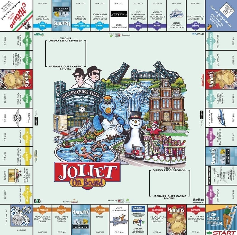 Joliet On Board é um clone do Banco Imobiliário baseado na cidade de Illinois. Os quadrados do tabuleiro são substituídos por marcos e empresas da área. Os rendimentos do jogo vão beneficiar a Câmara de Comércio da Região de Joliet.