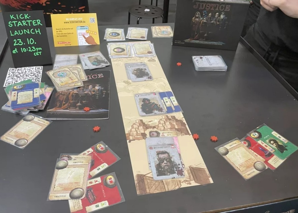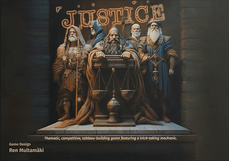 Justice é um jogo de construção de tabuleiro temático, competitivo, para 3 a 5 jogadores, com uma mecânica de truques. É ambientado na sociedade anã de Odrixia, o mesmo local onde se passa a Fábrica 42.