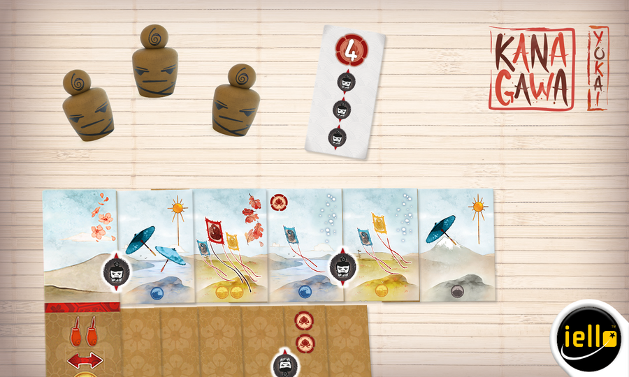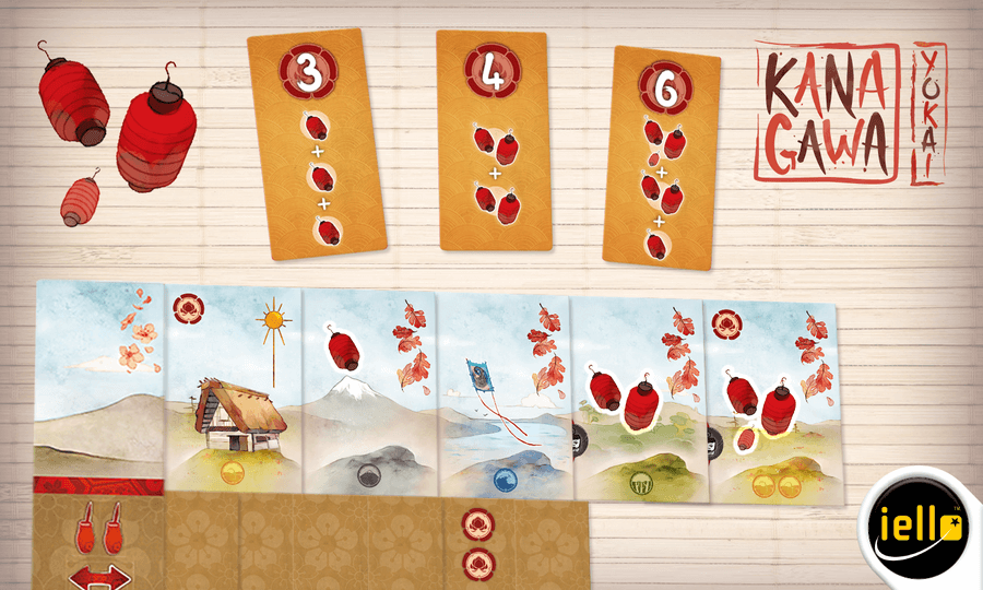 Kanagawa: Yokai inclui cartas e elementos de pontuação para três novos elementos - pipas, guarda-sóis e lanternas de papel - e para usá-los, você substitui quaisquer dois elementos no jogo base de Kanagawa com dois novos elementos.