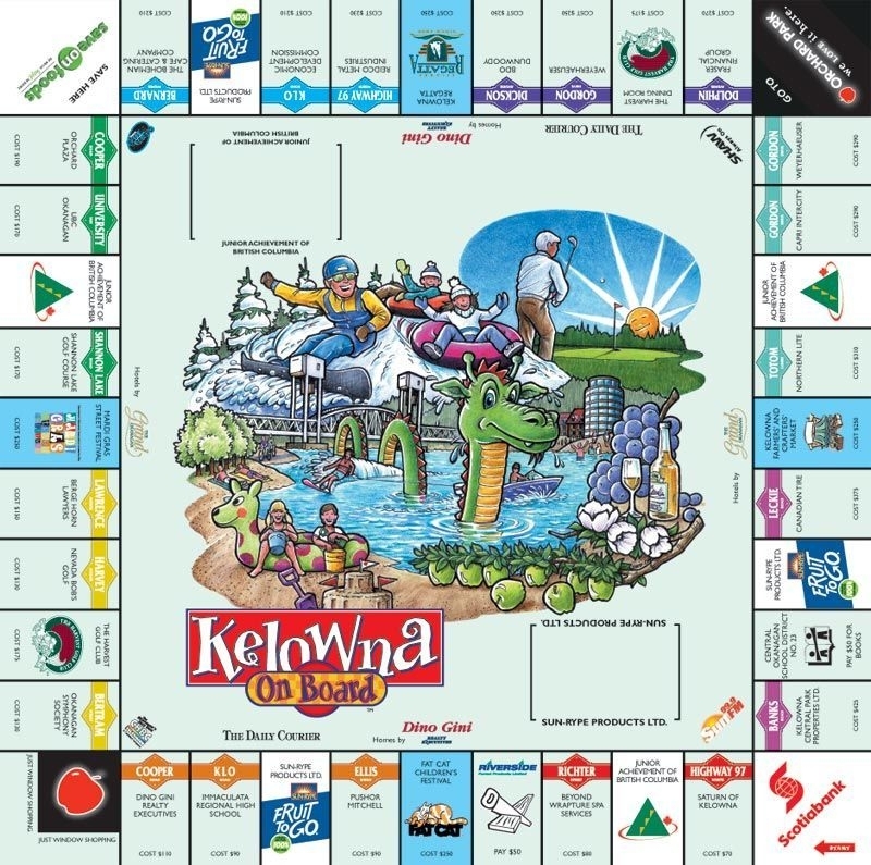 Kelowna On Board é um clone do Banco Imobiliário baseado na cidade de British Columbia, Canadá. Os quadrados do tabuleiro são substituídos por marcos e empresas da área. A renda do jogo vai para o benefício da Junior Achievement of British Columbia - Okanagan.