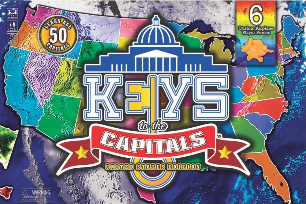 Um jogo educacional de corrida pelos EUA usando os 50 cartões-chave da Capital City. 2 a 6 jogadores começam na capital do estado de sua cidade natal e escolhem no baralho de cartas-chave para determinar a rota do avião de propulsão. O jogador que escolher o maior número de cartas-chave no final do jogo ganha a rodada. Cada jogador pode marcar no bloco de pontuação o capital que reivindica. Em caso de empate, o jogador com a capital de sua casa vence. Os empates são muito raros nos 252 jogos de teste de nossos 2 protótipos de trabalho. Somente alguns. O jogo é muito emocionante e conta com 6 efeitos especiais que podem deixar o jogo ainda mais emocionante. Idosos de 7 anos até mesmo uma criança de 4 anos pode jogar. Muito popular entre as crianças que, quando obtêm o primeiro protótipo, jogam 30 vezes em um período de algumas semanas e a maioria das rodadas dura em média 45-60 minutos. Os efeitos especiais ocorrem de 20 a 30 vezes por rodada quando os dois efeitos coincidem nos dados. 2 dados normais, 2 dados de efeito especial, 6 aviões de suporte em suportes, 50 cartões-chave, bloco de pontuação com lista de verificação de 50 estados. O legal do jogo é não precisar responder as perguntas e sim memorizar a(s) chave(s) de cada capital. É um divertido jogo de corrida para coletar a maioria das capitais. O objetivo é evitar as longas rotas necessárias para chegar às capitais. É normal ter mais de uma carta na mão devido à chave extra e roubar um efeito de chave.