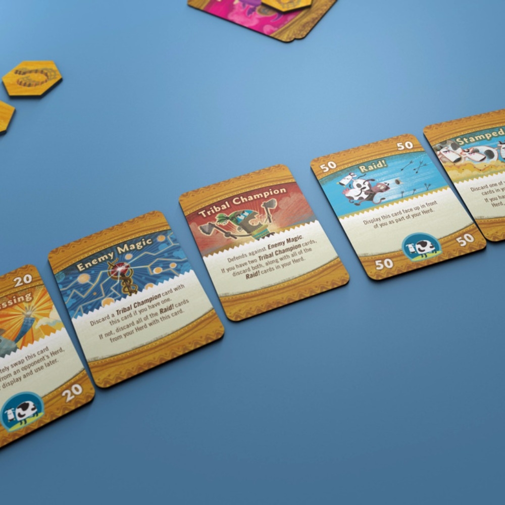Jogo familiar rápido de Reiner Knizia, ambientado no mundo de Greg Stafford de Glorantha. Os jogadores são khans de tribos fantásticas diferentes nas planícies de Prax, cada um montando um animal original que confere habilidades especiais. Todo mundo tenta acumular o maior rebanho, enquanto isso luta contra a magia inimiga, carrascos e tentativas de outros jogadores para roubar suas vacas.