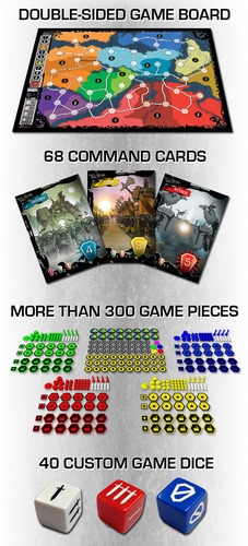 Arte impressionante estilo de quadrinhos faz você mergulhar no mundo dos robôs destruidores. A arte é apresentada na revolucionária nova mecânica de Carta de Comando, que traz um nível de estratégia para o jogo que mesmo os novos jogadores podem aprender em apenas algumas rodadas de seu primeiro jogo.