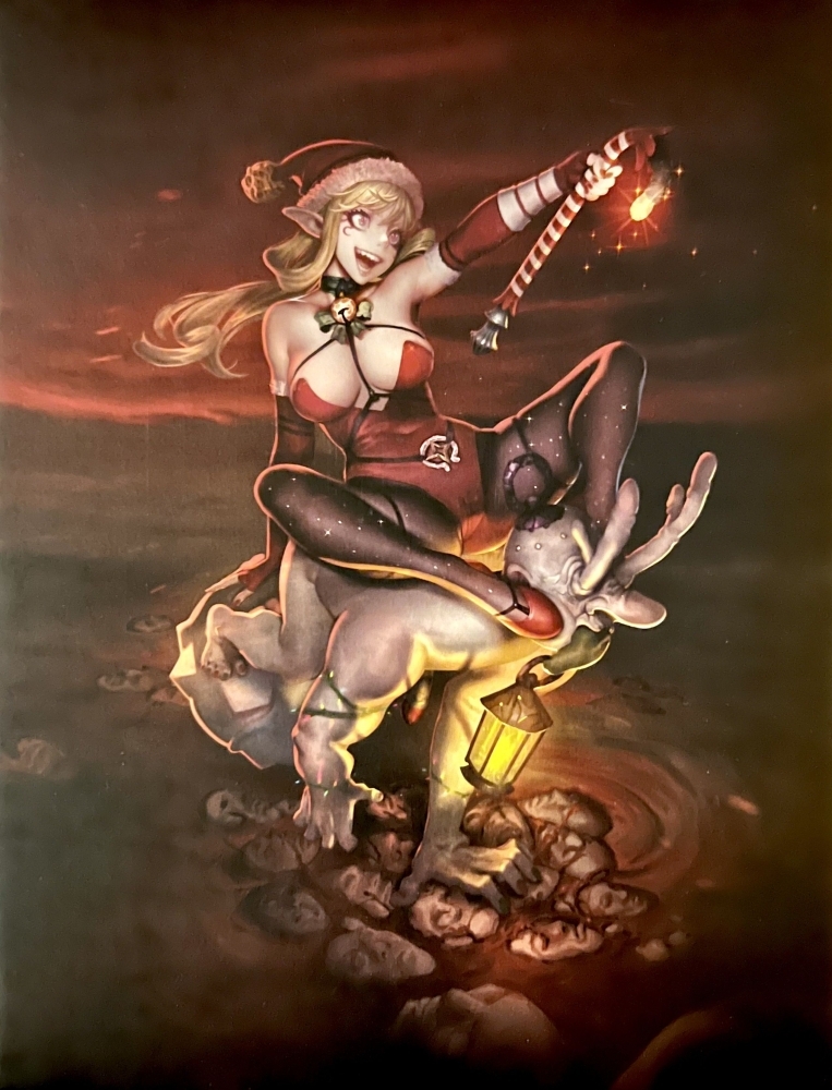 Prévia do cartão de caça: Cartão de caos da caça de feriados - Adicione isto à fase de caça de qualquer campanha ocorrendo durante os feriados. No início da fase de caça, coloque Elgnirk no último espaço do tabuleiro de caça. Sempre que um resultado de evento de caça aleatório for um par (11, 22, 33, etc.), mova Elgnirk um espaço no tabuleiro de caça em direção aos sobreviventes. Se Elgnirk e os sobreviventes se moverem para o mesmo espaço, abra este cartão de feriado e resolva o evento contido antes de resolver qualquer outra coisa. Limite uma vez por campanha.