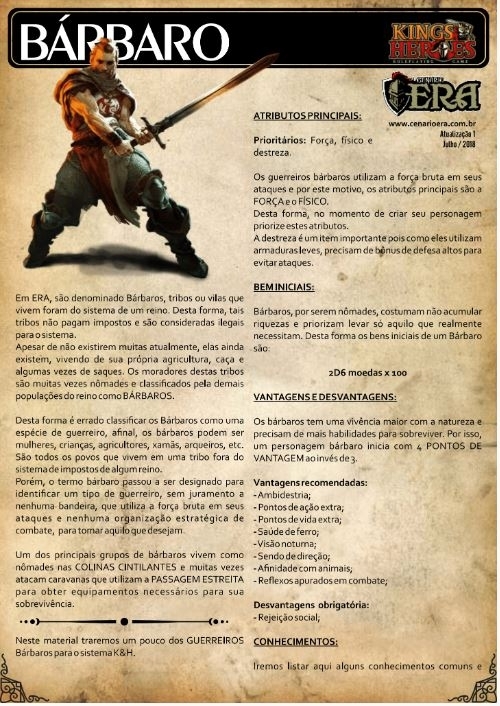 Material que traz os Bárbaros do cenário ERA para o RPG Kings & Heroes.