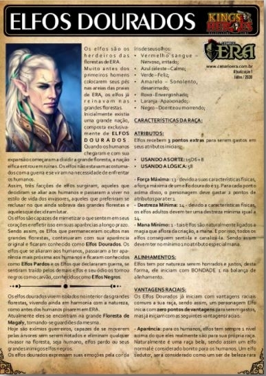 Fascículo especial do Cenário de ERA que trata sobre os Elfos Dourados para o sistema Kings & Heroes.