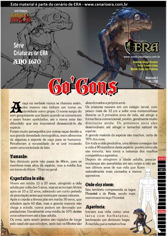 Material que traz os Go'Gons do cenário ERA para o RPG Kings & Heroes.