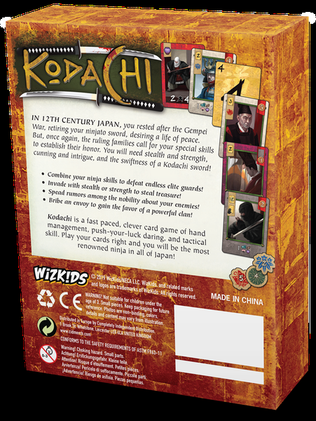 Em Kodachi, você procura roubar tesouros enfrentando os guardas de duas maneiras - com força, o que requer que você jogue cartas com números maiores do que os guardas, ou com furtividade, jogando cartas com números menores do que os guardas. Tesouros adquiridos com sucesso podem ser usados para gerar rumores, subornar emissários e fortalecer suas habilidades.