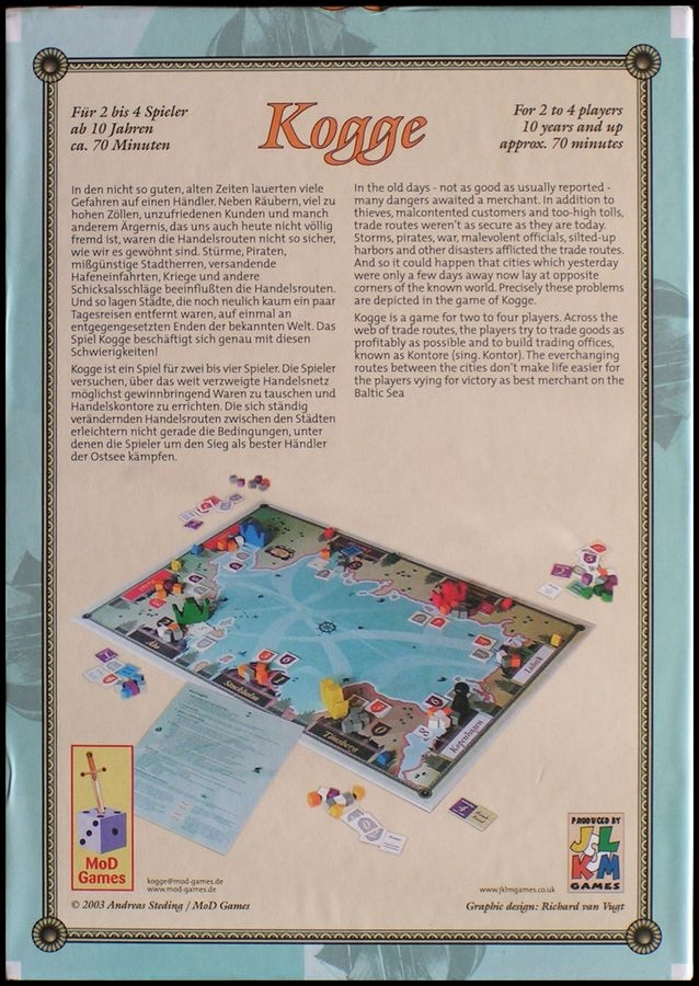 Kogge é um jogo para dois a quatro jogadores. Em toda a rede de rotas comerciais, os jogadores tentam negociar bens e estabelecer casas comerciais.