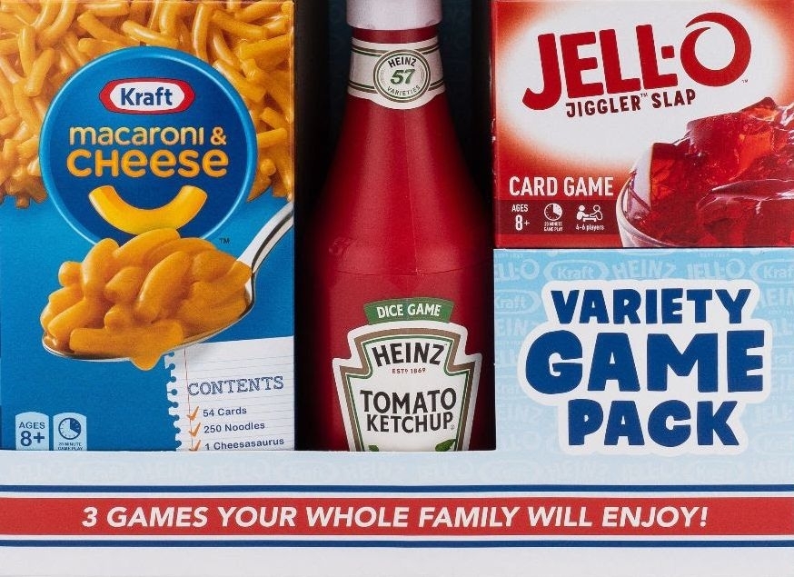 O Kraft Heinz Variety Game Pack contém três jogos familiares com tema de comida em embalagens temáticas: