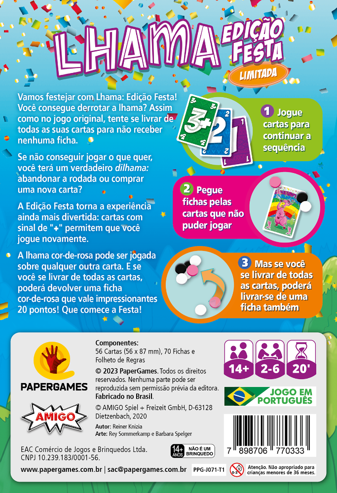 Vamos festejar com Lhama: Edição Festa! Você consegue derrotar a lhama? Assim como no jogo original, tente se livrar de todas as suas cartas para não receber nenhuma ficha.