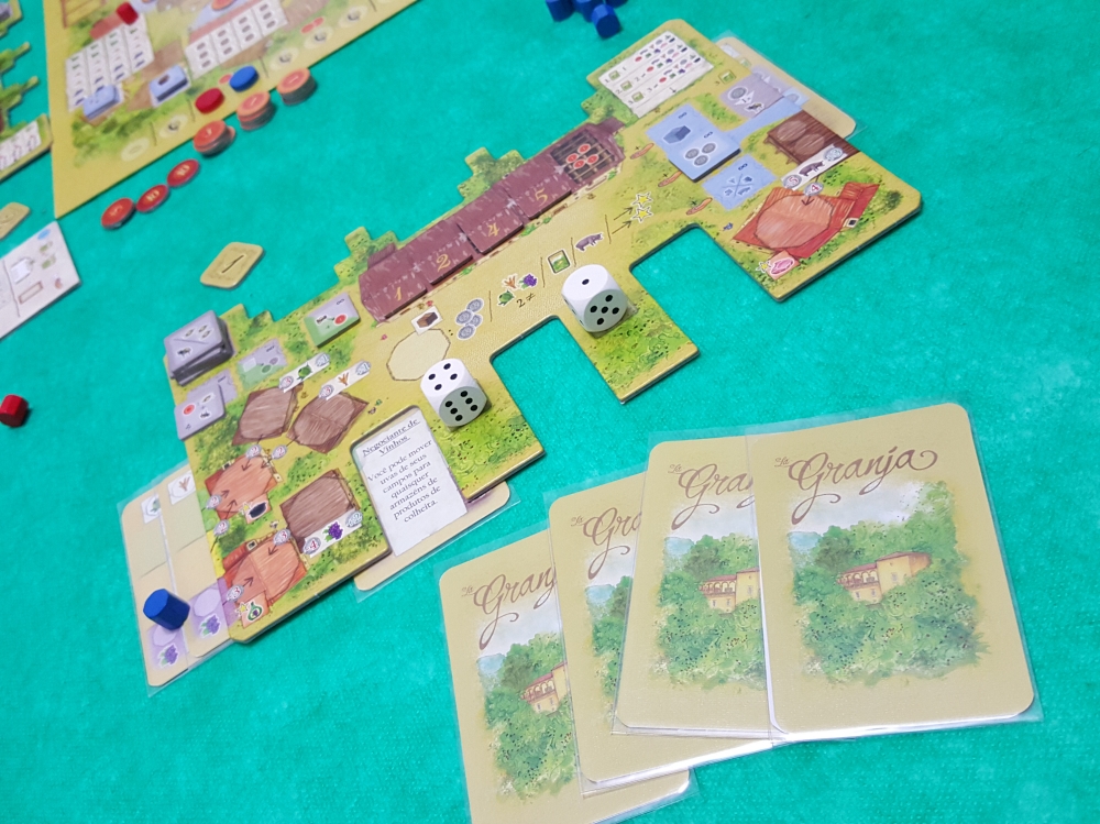 Final de jogo. Tabuleiro individual, cartas e demais componentes