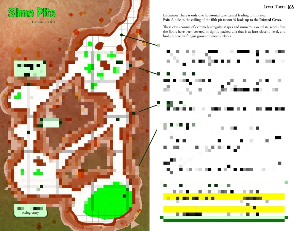 Essas cavernas consistem em formas extremamente irregulares e numerosas estalactites estranhas, mas o chão está coberto de terra compactada que está pelo menos próxima do nível, e fungos bioluminescentes crescem na maioria das superfícies.
