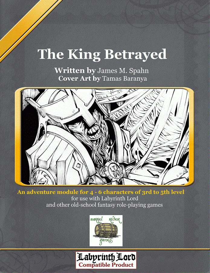 The King Betrayed é uma curta aventura autônoma para uso com Labyrinth Lord e outros jogos de RPG de fantasia da velha escola. Projetado para personagens de 4 a 6 jogadores do 3º ao 5º nível, este módulo fornece material para uma noite de aventura, bem como ganchos de enredo que podem ser facilmente transformados em uma campanha inteira.