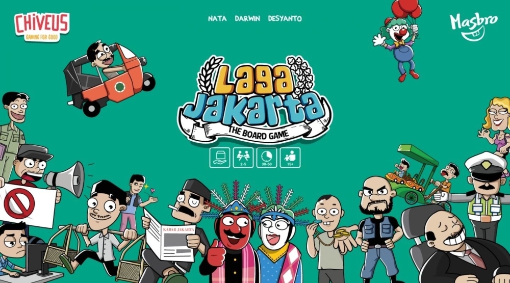 Laga Jakarta é um jogo de tabuleiro que retrata o estilo de vida urbano por meio dos diversos papéis das pessoas que vivem na capital, de forma satírica e humorada.