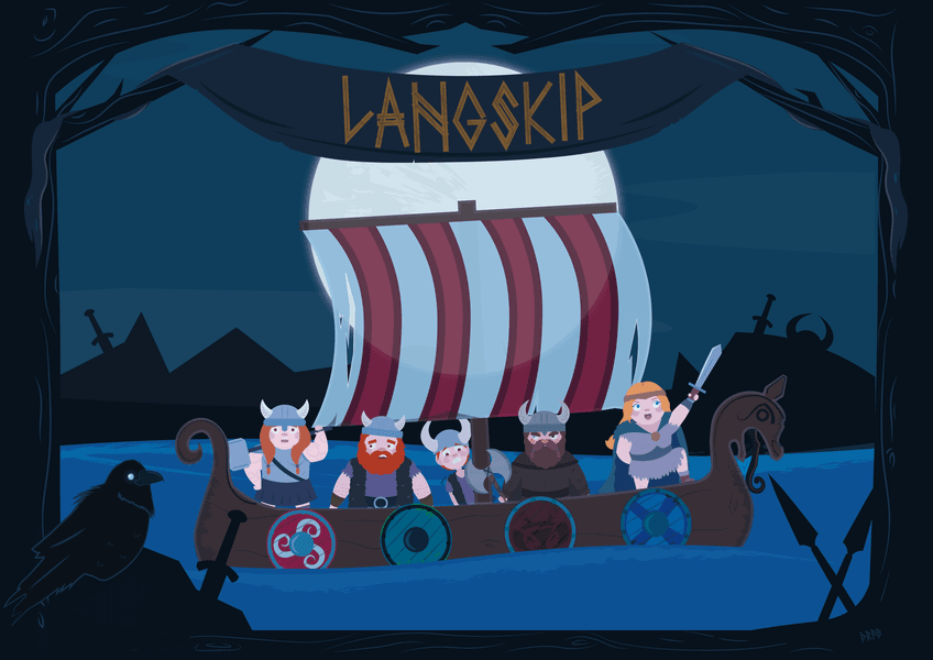 Langskip é um jogo de blefe de 2-4 jogadores. Você é um Viking que foi enviado por engano ao reino de Helheim, normalmente reservado para aqueles que morreram de forma desonrosa. Torna-se uma corrida para Asgard antes de seus companheiros vikings convencer Odin de que você deve ter permissão para entrar no glorioso salão dourado de Valhalla!