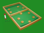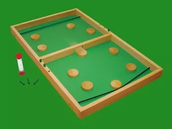 Um divertido jogo de destreza que pode ser jogado em apenas alguns minutos. O tabuleiro é dividido em dois por uma parede com uma pequena abertura no centro. Seu objetivo é ser o primeiro a atirar seus discos pela abertura usando o elástico esticado em sua parede traseira.