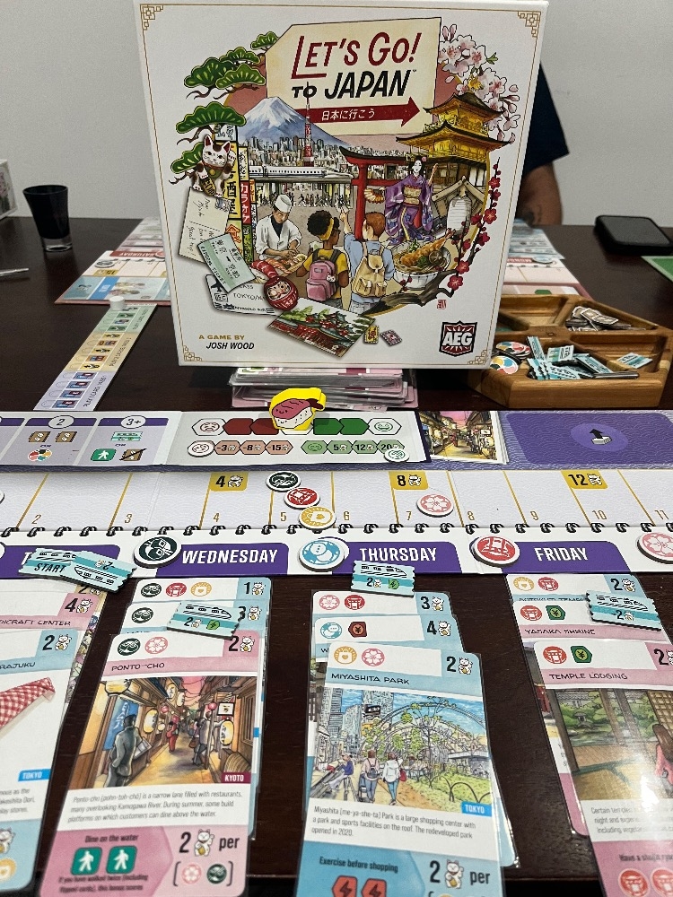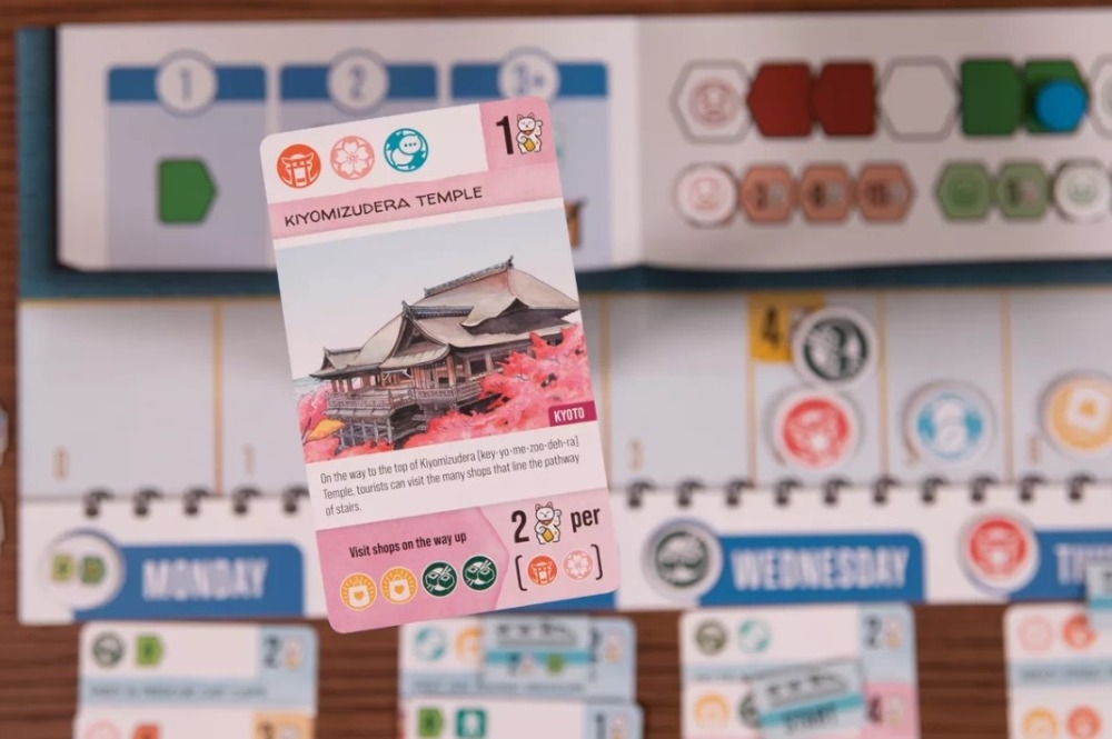 Enquanto salta entre Tóquio e Kyoto, você visitará atrações turísticas imperdíveis e conhecerá o sabor local. Usando 160 cartões lindamente ilustrados desenhados por artistas do Japão, você descobrirá atividades e as colocará estrategicamente para criar seu itinerário de uma semana. Desvende as atividades ideais para maximizar sua experiência enquanto equilibra seus recursos.