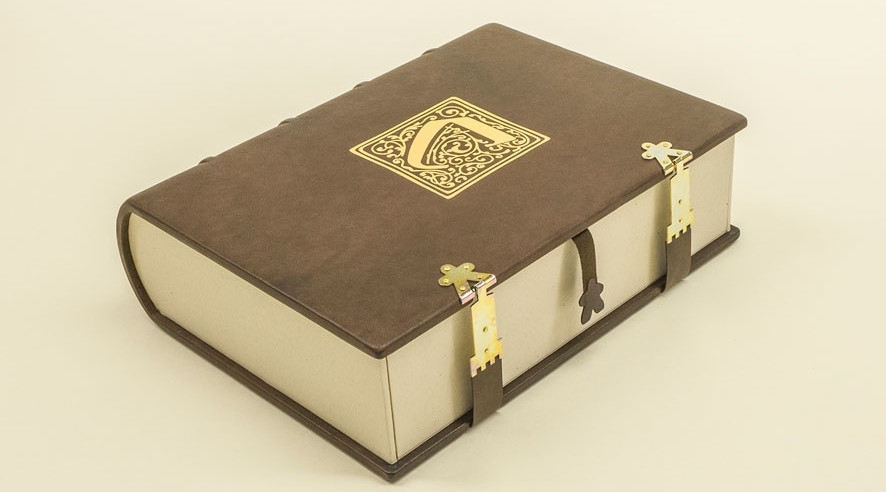 Edição especial de Carcassonne na forma de um livro medieval. Fabricada usando técnicas artesanais antigas, produzido em 55 etapas individuais.