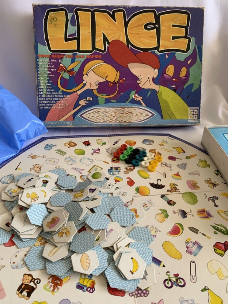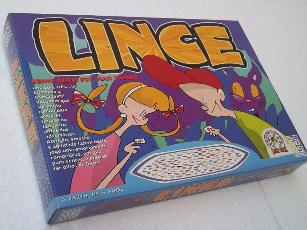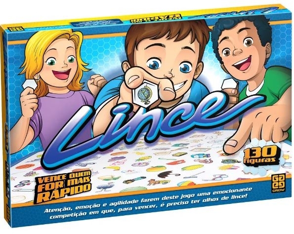 Lince é uma movimentada competição na qual sua rapidez e seu reflexo decidem cada jogada. Todos os jogadores recebem as cartelas com figuras que estão no tabuleiro. Depois do sinal, devem tentar localizá-las rapidamente, com suas fichas coloridas. Quem colocar primeiro as fichas será o vencedor. Por isso, não perca tempo! Você pode vencer ou perder em questão de segundos! Agora, respire fundo, abra bem os olhos e mostre que você é fera neste desafio!