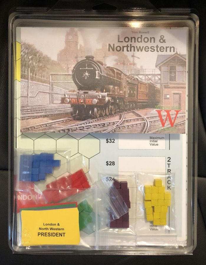 London & NorthWestern de Tom Russell está sediada na Inglaterra e no País de Gales no início da grande Era das Ferrovias. Além de usar o mecanismo seminal de 'leased track' de Tom Russell, inclui os benefícios de desenvolvimentos tecnológicos aprimorados que caracterizaram as ferrovias no Reino Unido. Para 3-5 jogadores por cerca de uma hora, uma página de regras claras e sem sorte, este jogo é bastante desafiador, como esperamos dos designs de Tom. O jogador com mais dinheiro ganha o jogo.
