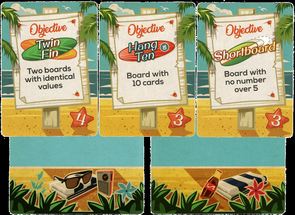 Pacote promocional com 7 novas cartas: 3 objetivos e 4 cenas de praia.