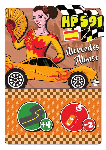 Motor racing drivers from all over the world are in Zanystan to enter Prince Affyerheid’s $1 gazillion Grand Prix. There’s no circuit; racers make the track up as they go, and the road is fraught with surprises. Rules? What rules? Throw tacks on the road, pour some sand into your colleagues’ engines, launch guided missiles loaded with superglue to stop your opponents. Anything goes if you want to lead the race. It’s every driver for themselves, and a jack-pot just for one… unless Monk E. Wrencher, the evil twin nephew of His Highness, manages to bring the race to an early end. So move into high gear and bring along your bag of tricks. Be the first driver to cross that finish line!