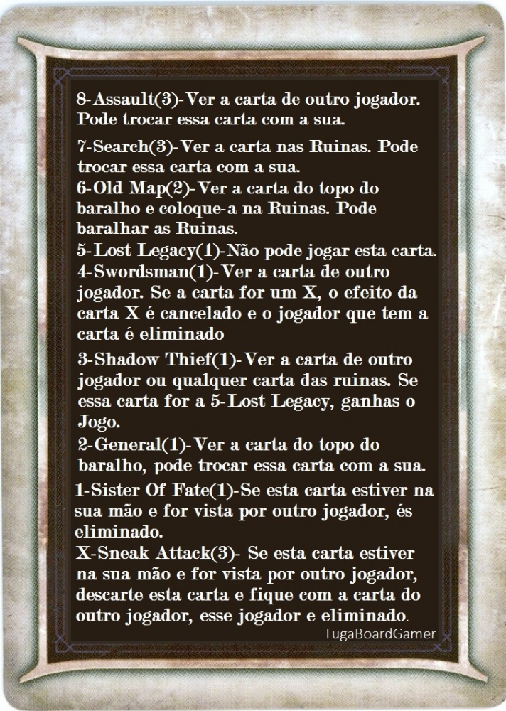 Ao combinar diferentes conjuntos Lost Legacy (mantendo apenas uma única carta Lost Legacy em jogo), até seis jogadores podem competir ao mesmo tempo.