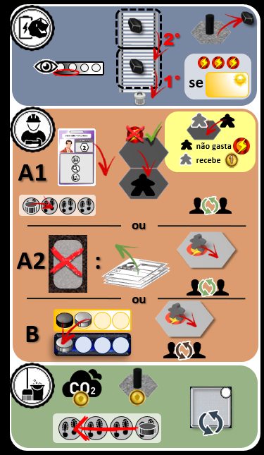 Carta de ajuda, explicando cada fase e a sequência de ações de uma rodada.