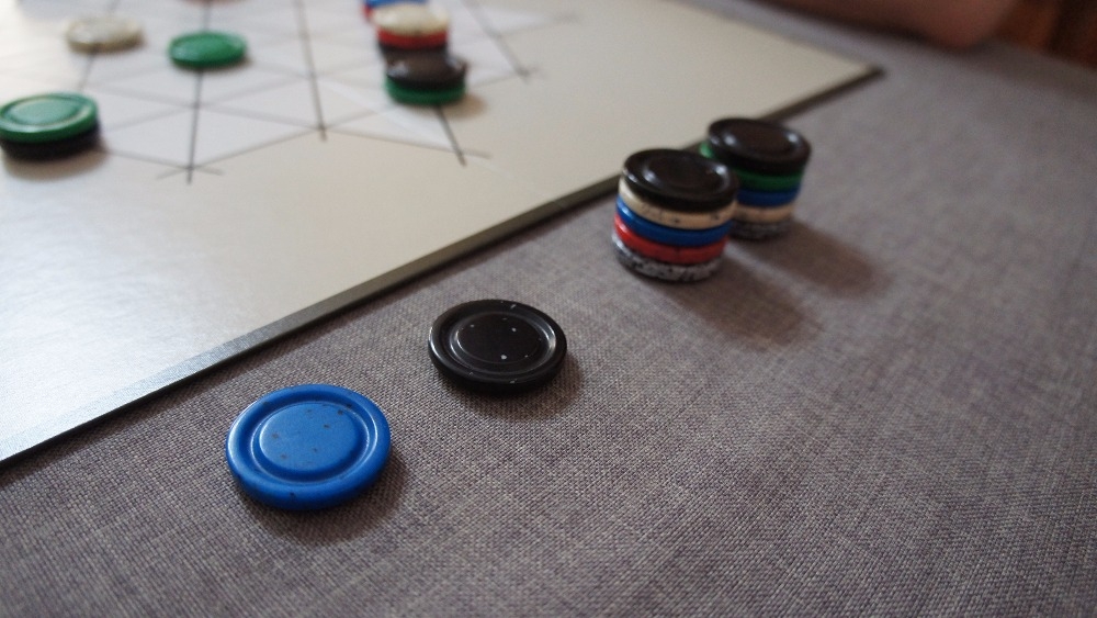 9 peças pretas (ref. Yinsh)