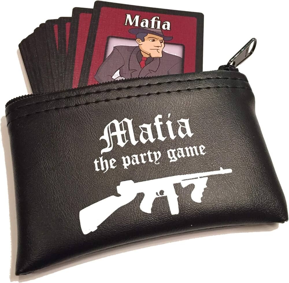 Mafia the Party Game tem vários papéis únicos que você não encontrará em nenhum outro lugar. Cada conjunto vem com uma bolsa com logotipo da máfia, livreto de instruções, 4 cartas da máfia, 1 detetive, 1 médico, 16 civis (8 mulheres, 8 homens), 1 padrinho, 1 barman, 2 máfia rival, 1 cupido, 1 advogado, 1 vigilante, 1 policial disfarçado, 1 mágico, 1 serial killer, 1 carteiro, 1 moderador, 1 avó com uma arma e 1 Miller.