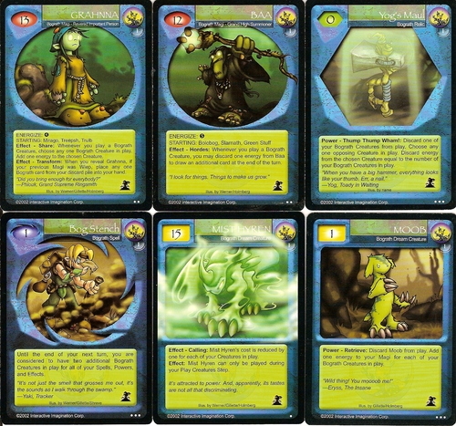 Exemplo de cartas de Bograth: dois magi, uma relíquia, um feitiço e duas criaturas.
