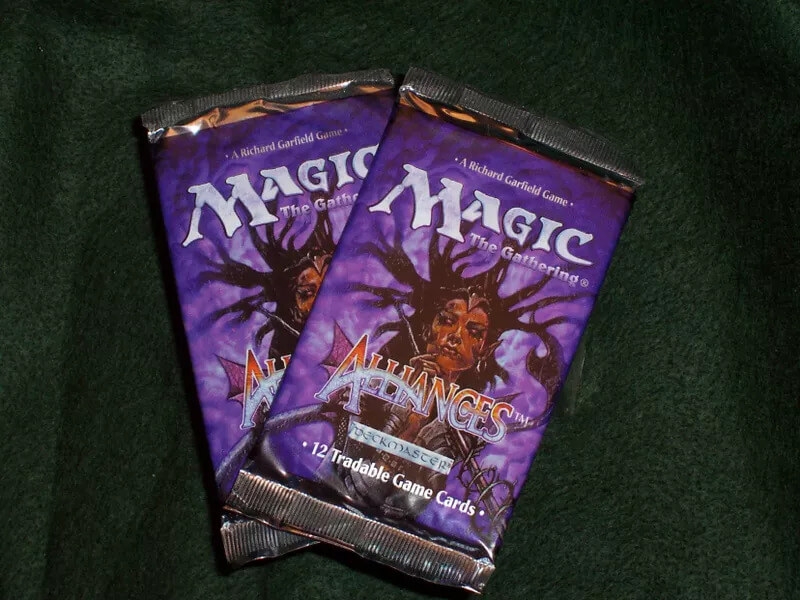 Alianças dá continuidade a diversos temas introduzidos em Era Glacial. Com "truques" (mágicas especiais de compra), manutenção cumulativa e "mágicas de exílio" (que têm como custo alternativo exilar outros cards), essa coleção de 199 cards foi (e continua sendo) uma expansão popular. Cada card comum nessa coleção foi impresso em duas versões, cada uma com a sua ilustração única.