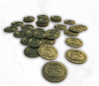 Um belo conjunto de 40 moedas de metal que você pode usar para Magna Roma ou seus outros jogos!