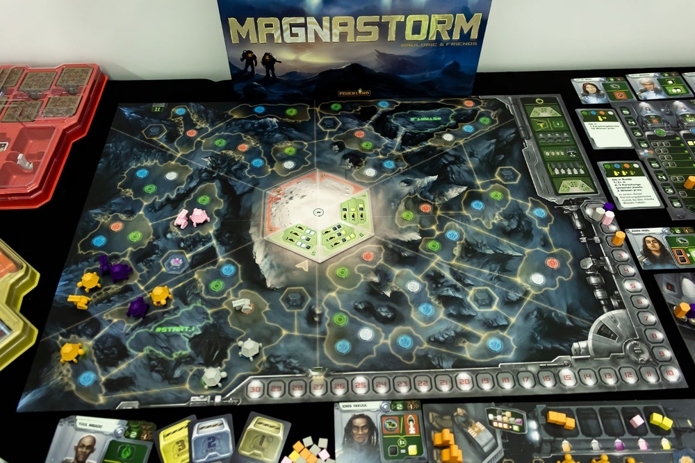 Magnastorm é um grande jogo de tabuleiro tático com pouca sorte. Escolha o momento certo para realizar ações ou comprar influência sobre os comandantes prestativos. Você obterá sucesso através de gerenciamento de recursos, logística inteligente, bom timing e um olhar perspicaz sobre as ações de seus oponentes. No final do jogo, cada jogador recebe uma das 120 cartas de recompensa, que podem ser usadas em jogos posteriores para compensar níveis variados de habilidade entre os jogadores.