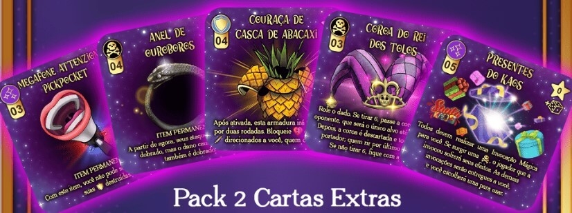 Pack com 5 cartas extras, para produção de PNP, que pode ser adquirido diretamente com o autor.