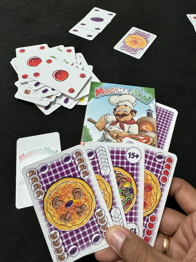 Cada jogador recebe oito pedidos diferentes para pizzas, e em seu turno adiciona cartas de ingredientes e opcionalmente uma carta de pedido ao forno.