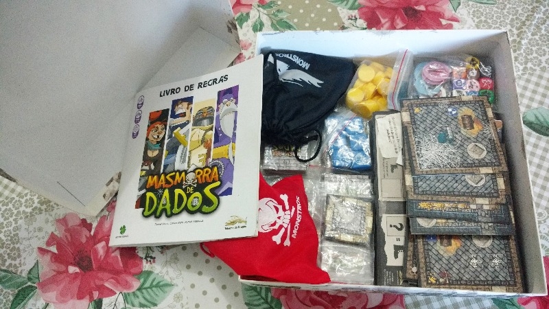 Caixa do jogo com os componentes (não possui insert de fábrica)