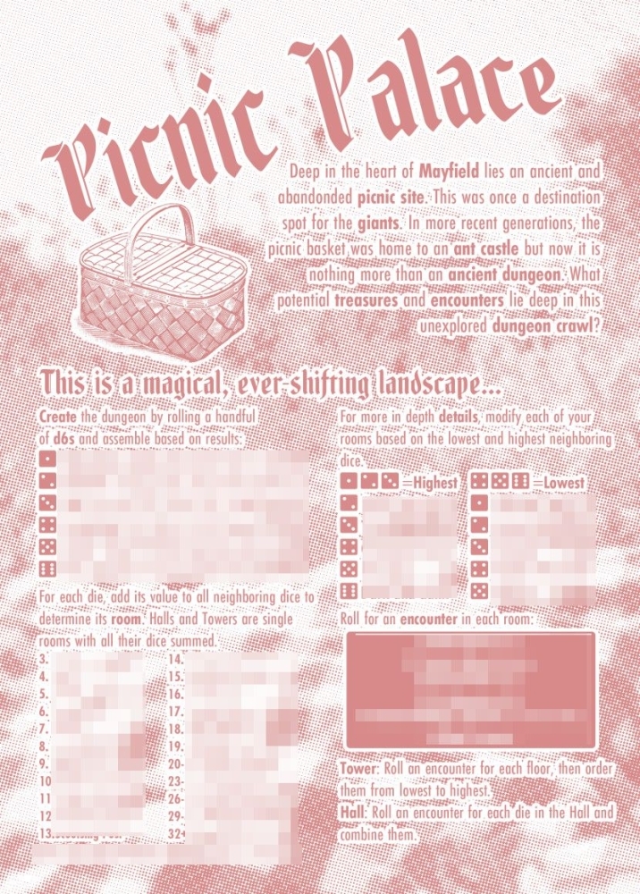 Bem no coração de Mayfield existe um local de piquenique antigo e abandonado. Este já foi um local de destino para os gigantes. Nas gerações mais recentes, a cesta de piquenique abrigava um castelo de formigas, mas agora nada mais é do que uma antiga masmorra. Que tesouros e encontros potenciais estão nas profundezas desta masmorra inexplorada?