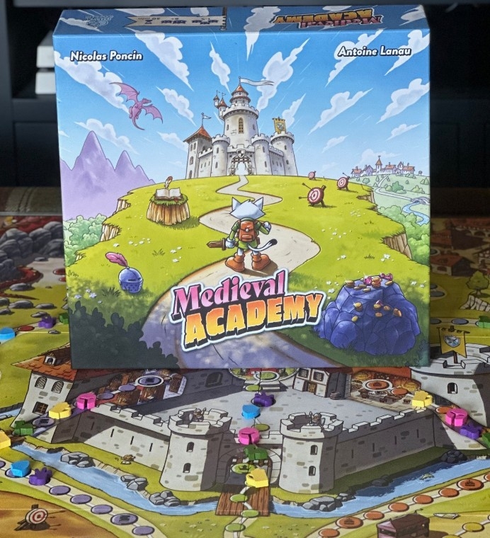 Medieval Academy é um jogo familiar rápido e dinâmico. É um jogo de cartas simples com regras muito intuitivas: ao jogar uma carta vermelha 3, você move 3 espaços na pista vermelha.