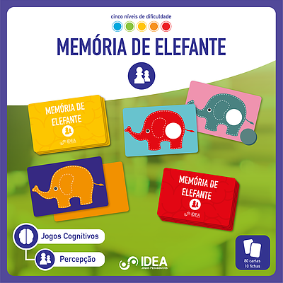 O desafio é a criança identificar as cores exatas dos elefantes ou do fundo da carta em que ele está. À medida que o nível de dificuldade aumenta, a diferença ou similaridade fica mais evidente.