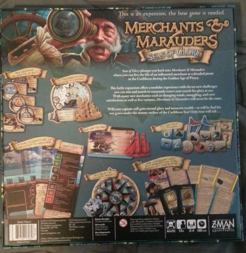 Esta forte expansão oferece uma experiência modular com onze novos desafios que você pode misturar e combinar para renovar constantemente sua busca por glória no mar. Com muitos novos mecanismos, tais como mudança de ventos, contrabando e satisfação da tripulação, bem como cinco variantes, Merchants & Marauders nunca mais será o mesmo. Será que o seu capitão ainda ganhará glória eterna e imensa riqueza - ou ele vai encontrar seu túmulo molhado sob a superfície tempestuosa do Mar do Caribe? Só o tempo dirá...