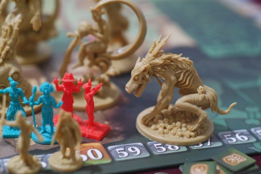 O primeiro jogo de caixa grande do designer de jogos pequenos John Clowdus, Mezo redefine o controle de área e a jogabilidade baseada em conflito. O jogo contém miniaturas monstruosas de divindades, com estratégias totalmente assimétricas, além de inúmeras maneiras para os jogadores atingirem a vitória: maior força no combate, maior quantidade de shamans no conflito e maior quantidade de guerreiros no conflito.